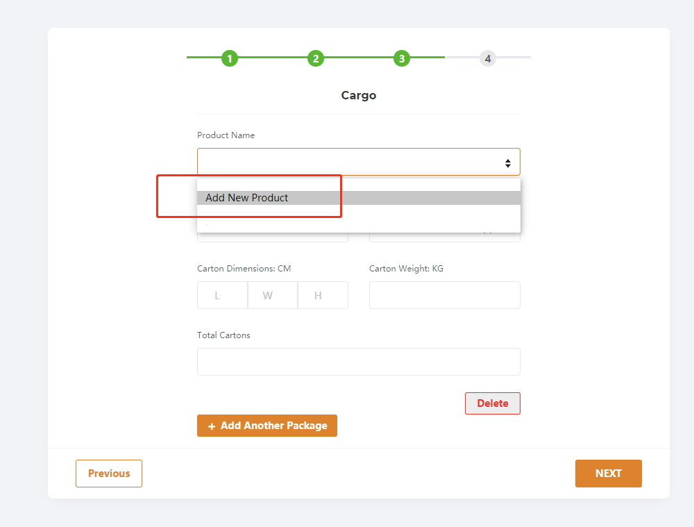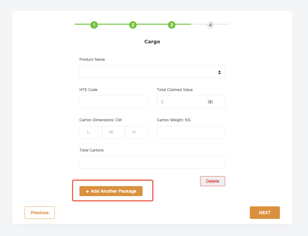 In Step 3 of the Quote Request, click "Add Another Package" button and then you can enter the cargo info for the 2nd and 3rd product, etc.